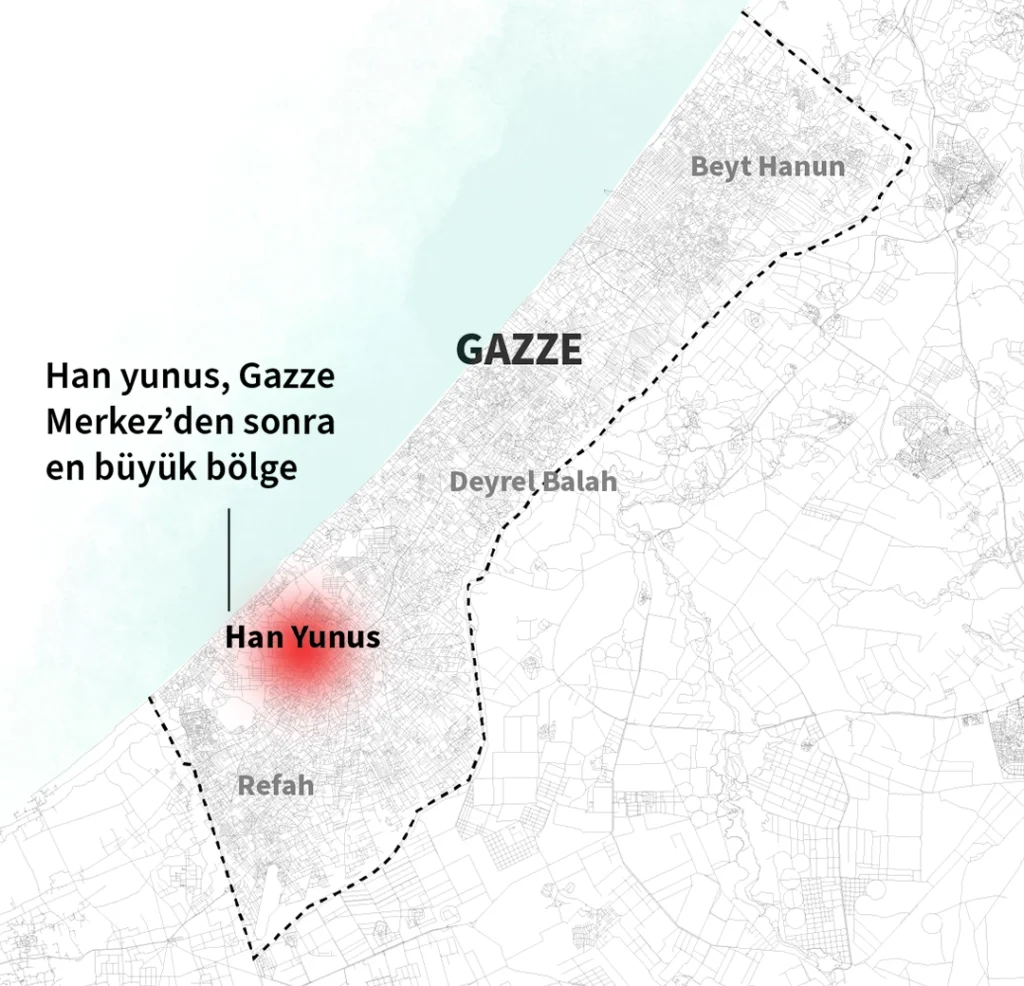 İsrail askerlerinin güneyde Han Yunus, kuzeyde Şecaiye ve Cibaliye dahil Gazze’nin büyük kısmında savaşın şiddetini artırdığı bildiriliyor. İsrail’in Kanal 13 televizyonunda yer alan habere göre Netanyahu hafta sonu ABD Başkanı Joe Biden telefon görüşmesi yapıp Han Yunus’taki saldırılarının üç ila dört hafta süreceğini söylemiş. Güneydeki Han Yunus kuzeydeki Gazze Merkez’den sonra Gazze Şeridi’nin en büyük ikinci bölgesi. 7 Ekim’deki savaş başlamadan önce bölgenin en yüksek istihdam oranı da Han Yunus’taydı.