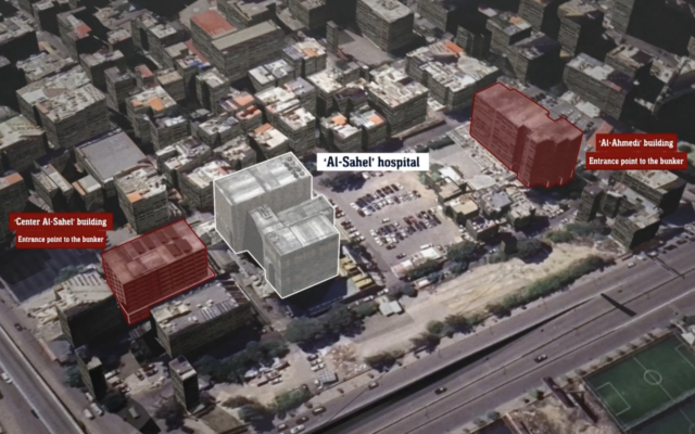 Sözcü ayrıca Hizbullah’ın merkezi kabul edilen Dahiye’deki Sahel Hastanesi’nin altındaki sığınağı tasvir eden bir harita gösterdi.
