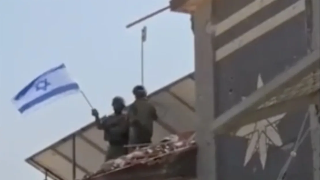 Gazze’de İsrail bayrağı. Fotoğraf: Israel Hayom/X