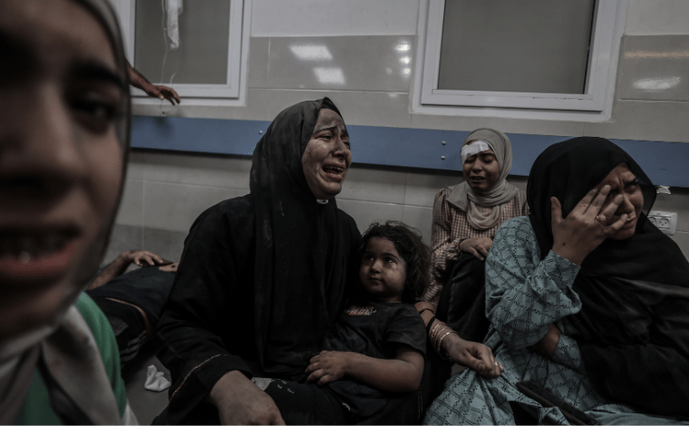 Hastaneye saldırı sonucu çok sayıda Filistinli, Şifa Hastanesi’ne taşındı. Fotoğraf: AA