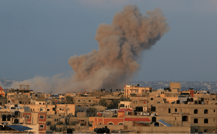 Refah kentine düzenlenen hava saldırıları sonucu bölgeden dumanlar yükseldi. Fotoğraf: AA