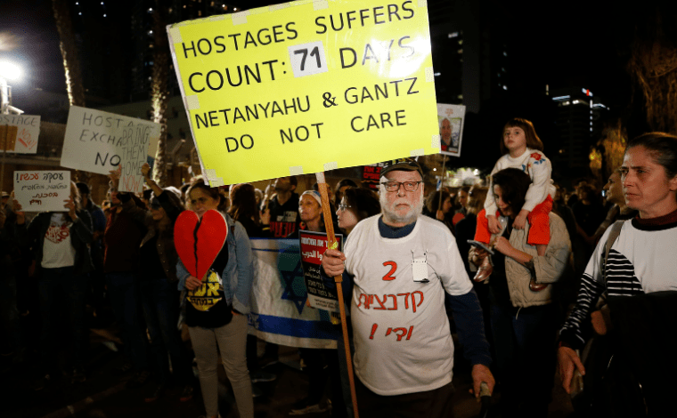 İsrailli rehinelerin öldürülmesi ardından pek çok kişi Tel Aviv’deki askeri karargâh Kirya’da toplandı. Protestocuların “Utanın,” “Zaman kalmadı” ve “Hemen anlaşın” sloganları öfkenin büyüklüğünü gösterdi. Göstericilerden Ben Aviv “İsrail vatandaşlarını koruyamıyorsa neden var? Bu sorunun askeri operasyonla çözülemeyeceği çok açık” dedi. Ekonomist Jonathan Porat ise “Buradayım, çünkü rehinelerin yerinde olsaydım insanların benim için sokağa dökülmesini isterdim. Askeri operasyonunun anlatıldığı gibi gittiğine inanmıyorum. Rehineleri geri istiyorum. Ben de bir zamanlar askerdim. Biz kimseyi geride bırakmayız” sözlerini dile getirdi.