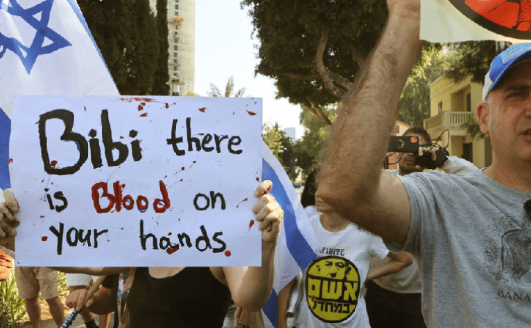 İsrail’in Gazze’ye yönelik saldırıları devam ederken esirlerin yakınları da İsrail Savunma Bakanlığı önünde nöbete başlamıştı. Yakınlarını arayan kişilerin öfkesi Netanyahu yönetimi karşıtı protestoya dönüşmüştü. İsrail Başbakanı Binyamin Netanyahu’yu istifaya çağıran kayıp yakınları “Bibi ellerinde kan var” yazılı pankart taşımıştı.
