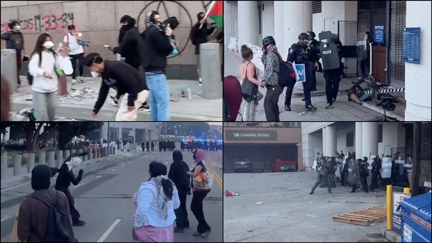 Cumartesi günü Los Angeles’in şehir merkezindeki federal binaların önünde de protesto gösterileri ve polisle şiddetli çatışmalar yaşandı.