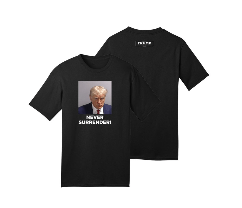 Trump, şimdi bu fotoğrafıyla, aynı zamanda ne kadar iyi bir tüccar olduğunu gösterdi ve bu fotoğrafı şimdi tişört, kahve bardağı ve şapka gibi ürünlerin üzerine bastırtarak, seçim kampanyasına mali kaynak olmaları için satışa sundu. Ürünlerde Trump’ın çatık kaşlı sabıka fotoğrafı ve altında ‘Asla Teslim Olma’ ifadesi yer alıyor.
