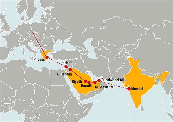 ABD’nin G20’de birçok ülkeyle imzaladığı Hindistan-Orta Doğu deniz koridoru.