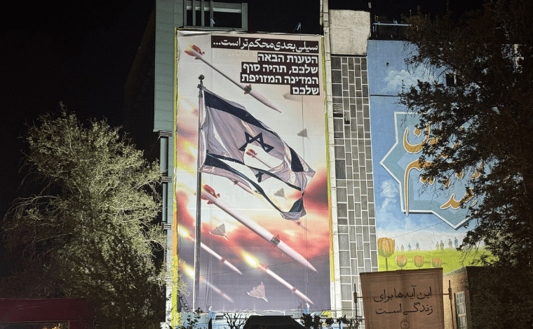 İran’ın başkenti Tahran’daki Filistin Meydanı’na asılan bir duvar afişinde ise “Bir sonraki tokat daha sert olacak” diye yazıldı. Afişteki görselde yırtılmış bir İsrail bayrağı ve inişe geçmiş füze ve dronlar vardı.