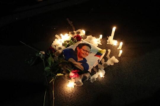 Villavicencio için yas tutan destekçileri fotoğrafının etrafında mum yaktı. Fotoğraf: Shutterstock