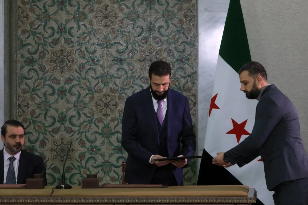 Suriye’nin yeni hükümeti gücün çoğunu geçici cumhurbaşkanının elinde yoğunlaştıran ve hukuk sisteminin temeli olarak İslam hukukunu koruyan geçici bir anayasayı kabul etti.