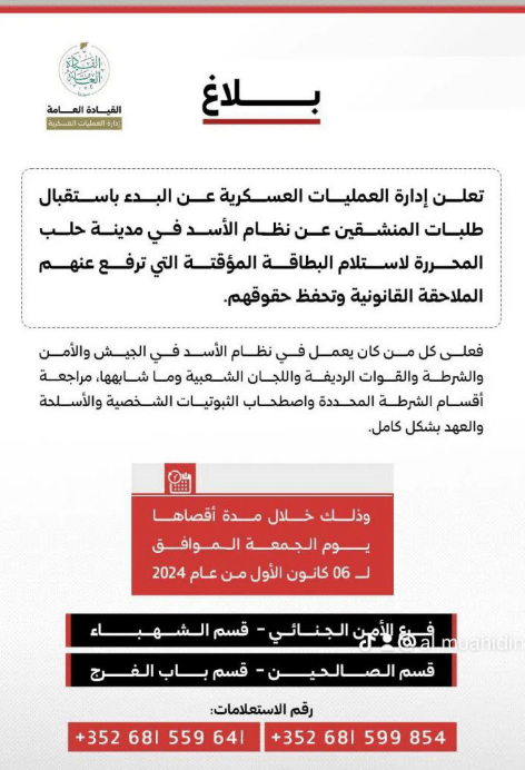Muhalifler kendi içinde kavga ededursun muhalifler bugün yayınladıkları bildiride Halep’teki Esad’a bağlı askerler, polis ve güvenlik görevlileri için af ilan etti. Bildiride bu kişilerden resmi af işlemleri için evraklarını teslim etmeleri istendi.