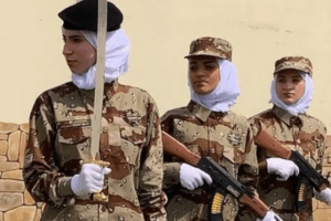 Suudi Arabistan’ın silahlı kuvvetlerinde yer alan ilk kadın askerler.