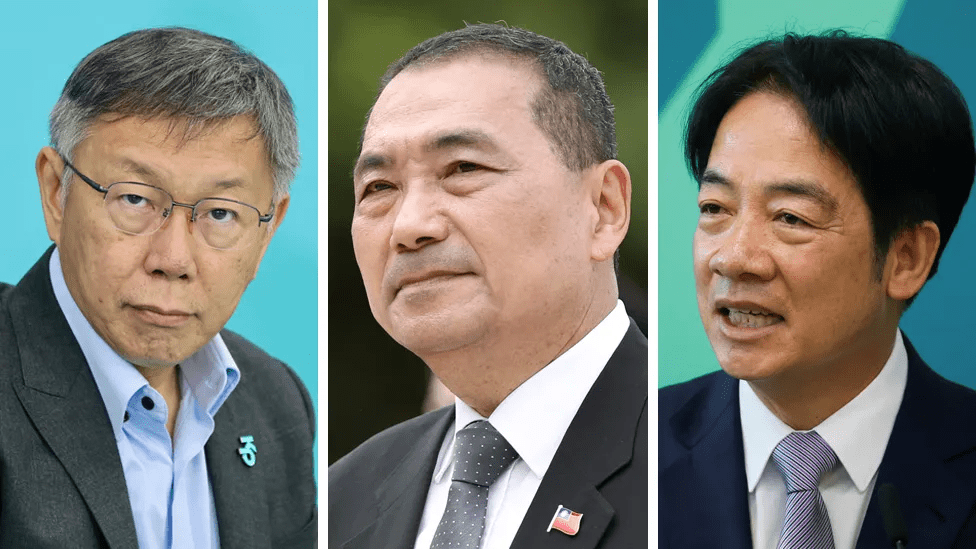 Soldan sağa TPP’nin adayı Ko Wen-je, KMT’nin adayı Hou Yu-ih ve DPP’nin adayı Lai Ching-te. Fotoğraf: EPA