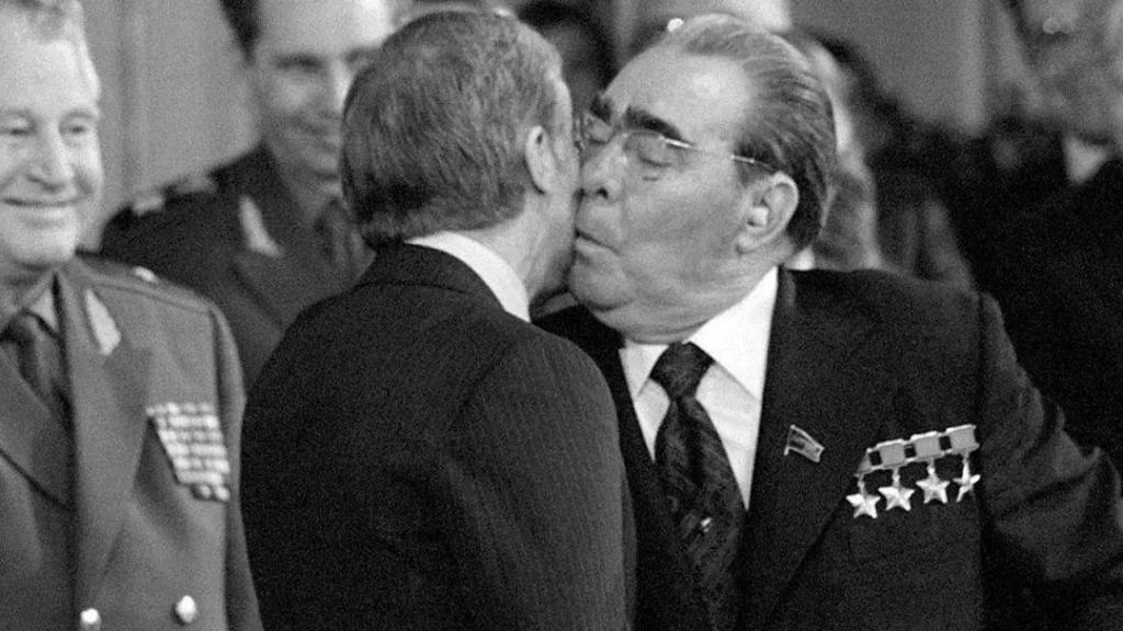 Jimmy Carter ve Leonid Brejnev, 18 Haziran 1979’da Viyana’daki Hofburg Sarayı. Basın mensupları sonrasında kült haline gelecek bu kareyi “barış öpücüğü” olarak tanımlamışlardı.