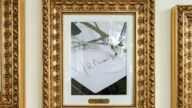 Sergide tüm başkanların portreleri yer alırken, Biden’ın portresi yerine yalnızca autopen cihazıyla atılmış imzasının bir fotoğrafı kondu. Autopen, başkanların imza atması gereken belgelerde sıkça kullanılan otomatik imza cihazı.