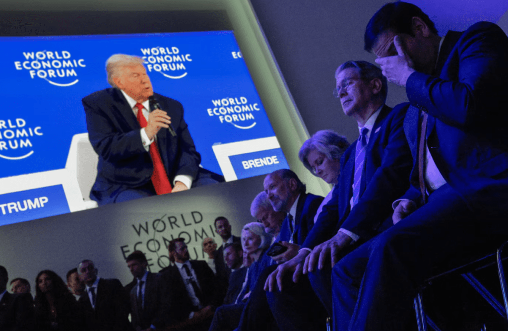 Çarşamba günü yaptığı konuşmada Trump, uzun süredir ABD’nin müttefiki olan ülkeleri, bu ülkelerin temsilcilerinin de izlediği sırada sert bir şekilde eleştirdi. Avrupa’yı önceki bir döneme göre tanınmaz halde ve yanlış yöne doğru gittiğini söyledi. Danimarka’yı nankörlükle suçladı. ABD’nin desteği olmasaydı İsviçre’nin bir ülkesi olmayacağını söyledi. Ve Fransa Cumhurbaşkanı Emmanuel Macron’un etkinlikte güneş gözlüğü takmasıyla alay etti.