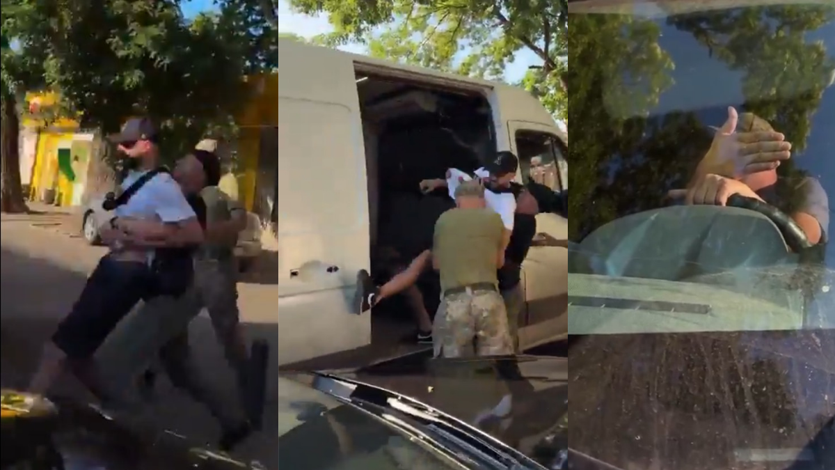 Söz konusu görüntülerde onlarca askerin bir kaçak Ukrayna vatandaşını zorla sevk aracına bindirmeye çalıştığı görüntülere yer verilirken, Ukraynalı gencin askere gitmemek için direndiği ve aracın kapılarını tekmelediği görüntülendi.