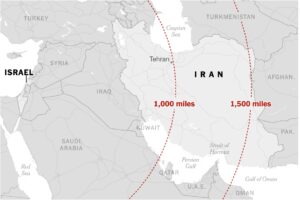 Tel Aviv ile Tahran’ın arasındaki mesafe 1000 mil, yani 1,610 kilometre.