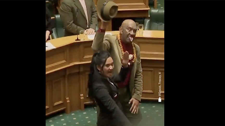 Yeni Zelanda Parlamentosunda yer alan Maori üyeleri İngilizler ile yerli Maoriler arasındaki 184 yıllık antlaşmayı yeniden yorumlayacak tartışmalı yasa tasarısını “Haka dansı” ile protesto etti