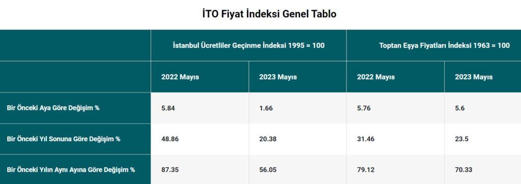 İstanbul'da mayısta giyim harcamalarındaki artış nisanda olduğu gibi yüksek çıktı. İstanbul’da perakende fiyat hareketlerinin göstergesi olan İstanbul Ücretliler Geçinme İndeksi Mayıs’ta bir önceki aya göre yüzde 1,66, toptan fiyat hareketlerini yansıtan Toptan Eşya Fiyatları İndeksi ise yüzde 5,60 oranında arttı. 2022 Mayıs ayına göre 2023 Mayıs ayında yaşanan fiyat değişimlerini gösteren bir önceki yılın aynı ayına göre değişim oranı İstanbul Ticaret Odası’nın (İTO) 1995 bazlı Ücretliler Geçinme İndeksinde yüzde 56,05, Toptan Eşya Fiyatları İndeksinde ise yüzde 70,33 oldu.