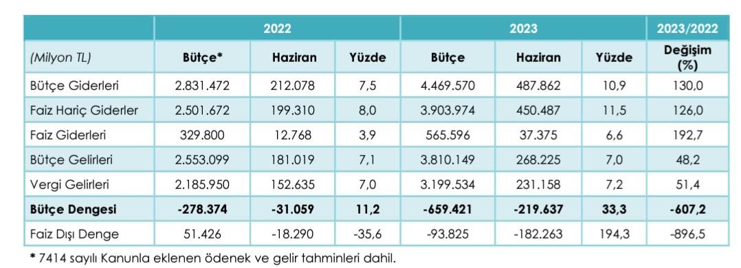 Bütçe açığının haziran ayında rekor kırmasında deprem harcamalarının, seçim öncesi savurganlığın ve Emeklilikte Yaşa Takılanlar (EYT) konusundaki düzenlemenin faturası etkili oldu. Temmuz ayında asgari ücret ve memur maaş zammı nedeniyle ciddi oranda artmaya devam etmesi ancak gelirlerin de ÖTV ve KDV zamlarıyla yükselmesi bekleniyor.