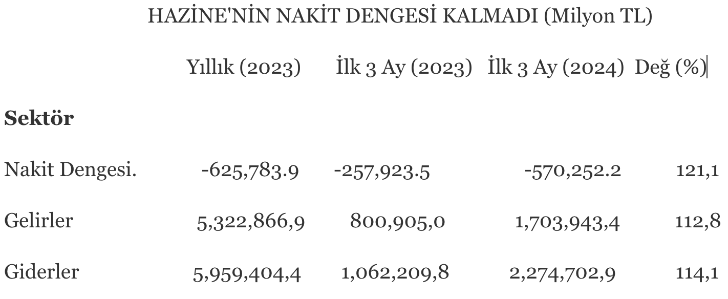 Hazine'nın yılın ilk üç ayındaki toplam 570,2 milyar TL'lik nakit açığı aynı dönem için rekor bütçe açığı gerçekleşeceğini de gösteriyor. Bu durumda yılın tümündeki bütçe açığı 2023'teki 1,375 trilyon liralık rekor açığın çok üstünde olacak.