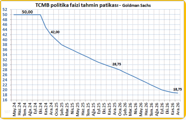 ABD'nin önemli yatırım bankalarından Goldman Sachs Türkiye Cumhuriyet Merkez Bankası'nın (TCMB) 2025'te faiz indirim döngüsünü başlatacağını öngördü.