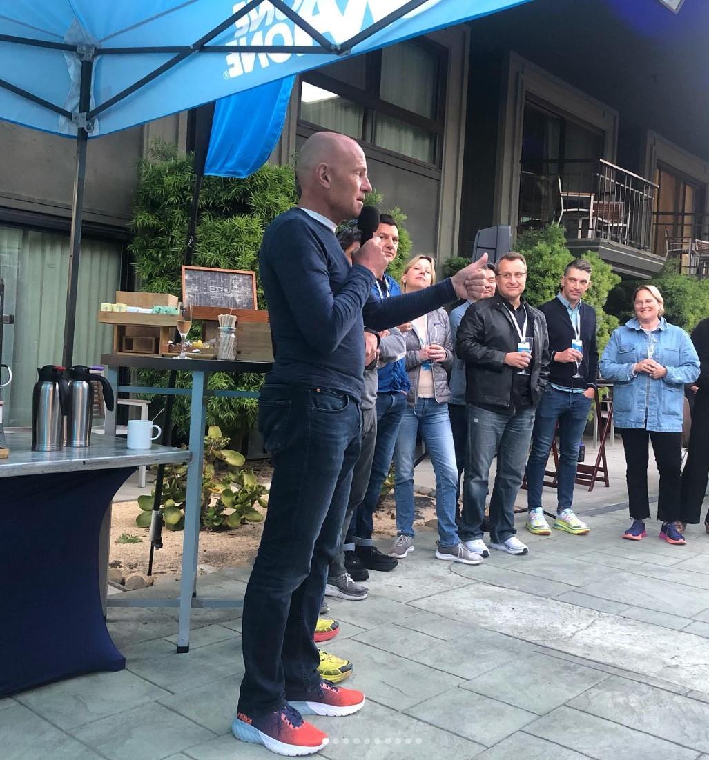 Hoka’nın kurucularından Nicholas(Nico) Mermoud instagram sayfasına şirketin 10. yaşında çalışanların bazılarıyla bir araya geldiği resmi koymuş ve “10 yaşındayız,ama hala bir bebeğiz” demiş. Hepsinin ayaklarında Hoka var.