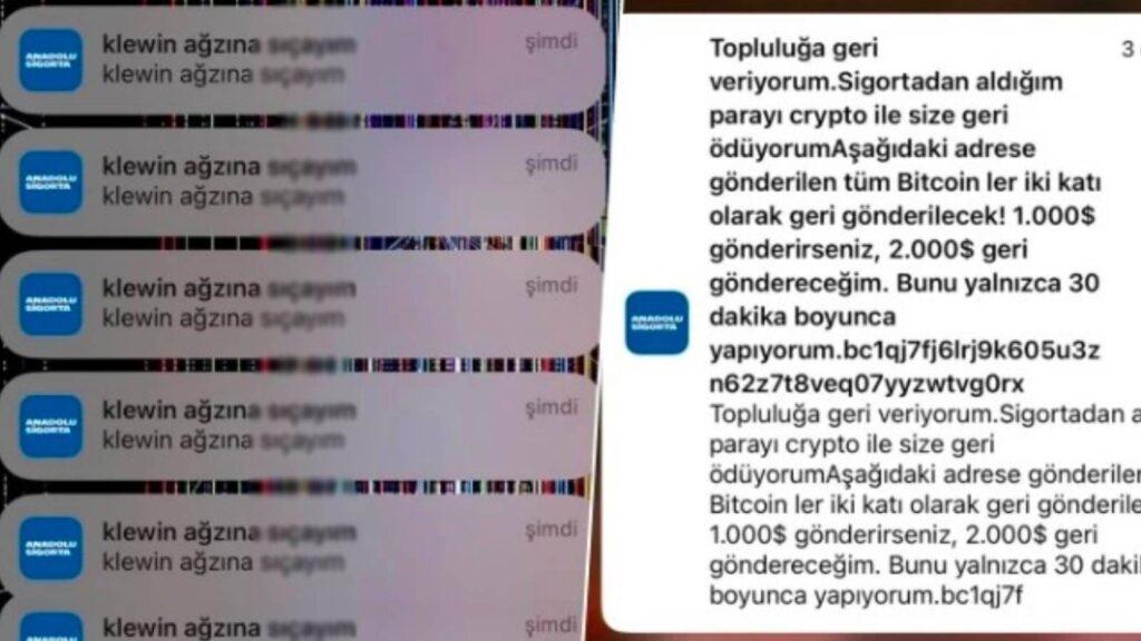 Mumay, kendisine Anadolu Sigorta’dan gelen bazı küfürlü mesajları paylaştı.