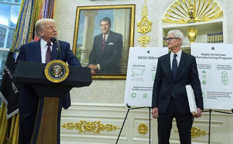 Açıklamada, Apple’ın ABD’de 100 milyar dolarlık yeni yatırım taahhüdünde bulunduğu, bununla birlikte şirketin ülkede yapacağı yatırımların tutarının gelecek 4 yıl içinde toplam 600 milyar dolara ulaşacağı bildirildi.