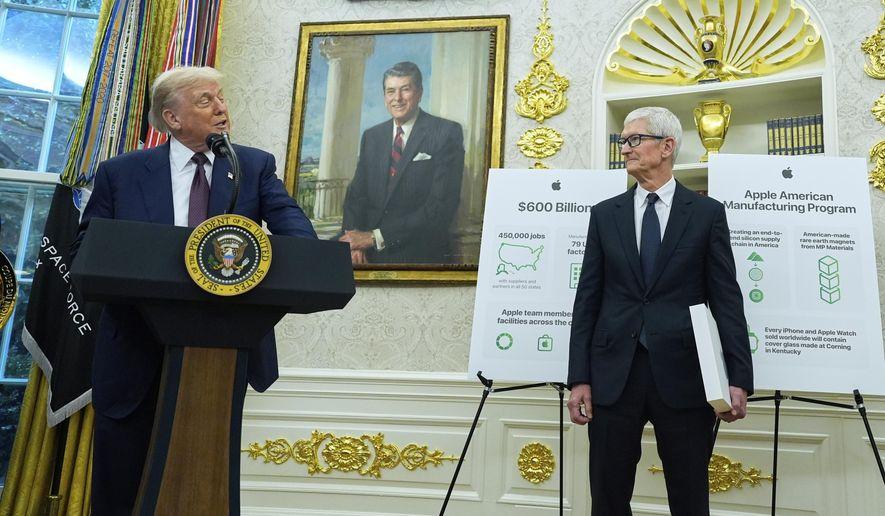 Açıklamada, Apple’ın ABD’de 100 milyar dolarlık yeni yatırım taahhüdünde bulunduğu, bununla birlikte şirketin ülkede yapacağı yatırımların tutarının gelecek 4 yıl içinde toplam 600 milyar dolara ulaşacağı bildirildi.