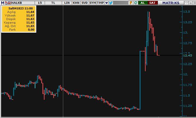 Finansal piyasalar uzmanı İris Cibre, HalkBank’ın Borsa İstanbul’da önceki gün gerçekleşen işlem hacminin 43,1 milyon lot (510 milyon 272 bin 600 TL) olduğunu belirterek, “Bu işlemin yarısı haberin duyulmasından sonraki 17:15-17:30 saatleri arasındaki 15 dakika içinde gerçekleşti. Bunun hacmi de 21,6 milyon lot yani 265 milyon TL değerinde” demişti.