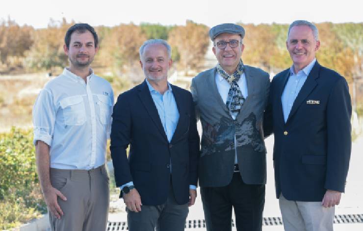 Edirne Uzunköprü’de düzenlenen hasat etkinliğine (soldan sağa) Avrupa Tarım yöneticileri Haşimcan Yazıcıoğlu, Ahmet Yazıcıoğlu, gurme Süreyya Üzmez ve Ceviz Üreticileri Derneği Başkanı Ömer Ergüder katıldı.