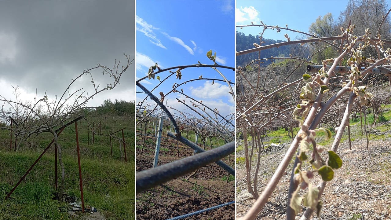 Zirai donun şeftali ve kivi üretimine zararı büyük. Kivi üreticisi Korkmaz, “30 tonluk bahçemizden 2 ton kivi çıkar mı, onu düşünür haldeyiz” dedi.