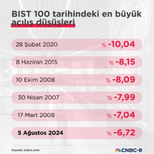 ABD’de artan resesyon endişeleriyle tetiklenen satış baskısı Japon hisse senedi piyasalarında 1987’deki Kara Pazartesi’den sonra son 37 yılın en sert düşüşüne neden oldu. Japonya’da Nikkei 225 endeksi yüzde 12,4 düşüşle günü 31.458 puandan, Güney Kore’de Kospi endeksi yüzde 8,77 değer kaybıyla 2.441,5 puandan günü tamamladı. Hong Kong’da Hang Seng endeksi günü yüzde 1,46 düşüşle 16.698 puandan, Çin’de Şanghay bileşik endeksi yüzde 1,54 düşüşle 2.860 puandan, Hindistan’da Sensex endeksi ise yüzde 2,74’lük düşüşle 78.759 puandan kapattı. Singapur Borsası’nda ise Straits Times Endeksi günü yüzde 4,6’lık düşüşle kapattı. Endeks daha önce Covid pandemisinin başladığı 2020 Mart ayında bu denli yüksek oranda değer kaybetmişti. Analistler, Japonya Merkez Bankası’nın (BoJ) faiz artırması nedeniyle Japon yeninin hızla değerlenmesinin bölge piyasalarındaki satış baskısını tetiklediğini söyledi. Güney Kore, hisse senedi piyasalarındaki düşüşü ‘aşırı’ olarak değerlendirirken, gerektiğinde dengeleyici adımları hızla atacağını belirtti.