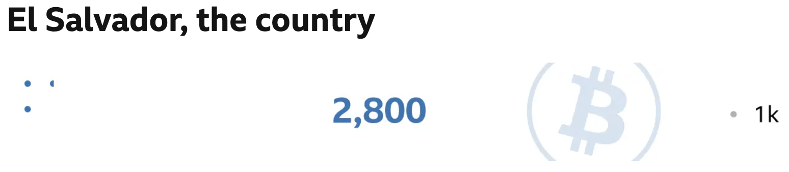 Orta Amerika ülkesi El Salvador’un Bitcoin sever başkanı 2021 yılında ülkesi için tartışmalı bir yatırım planının parçası olarak kamu parasıyla Bitcoin satın almaya başladı. Buradaki bitcoin sayısı portföyü takip eden bir web sitesi işleten Hollandalı araştırmacı Elias tarafından tweetlerinden toplandı. Tam olarak kaç adet Bitcoin satın alındığı ya da hangi değerden satın alındığı konusunda kamu kayıtları tutulmuyor.