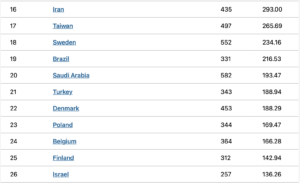 Nature dergisinin sıralamasında Türkiye 21. sırada. İran’ın gerisindeyiz ama ilginç biçimde İsrail’in ilerisindeyiz.