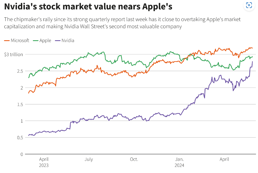 Elon Musk yeni girişimi xAI ile OpenAI'ye meydan okudu, yapay zekada rekabetin artacağı düşüncesiyle Nvidia hisseleri 3 günde yüzde 20 yükseldi. Piyasa değeri 2,8 trilyon dolara ulaşan Nvidia'nın 2,9 trilyon dolarlık Apple'ı yakalamasına ramak kaldı.