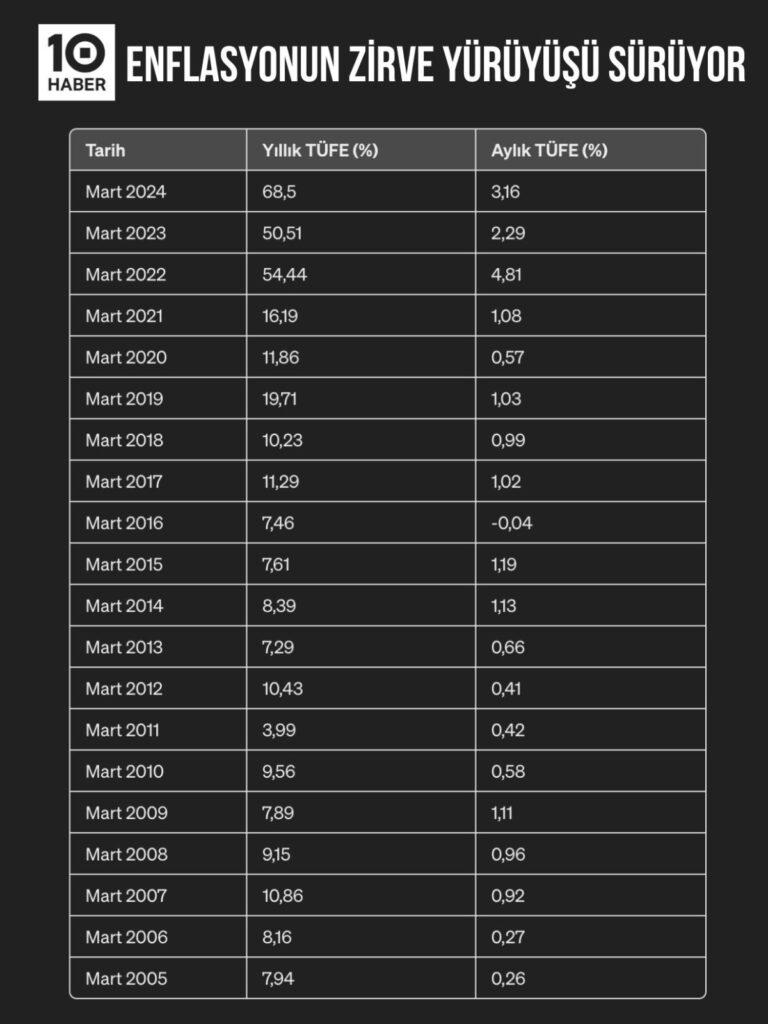 TÜİK verilerine göre Mart ayında yıllık çekirdek enflasyon yüzde 75,21 olarak gerçekleşti. Mart ayı yıllık çekirdek enflasyon verisi zirveye ulaşıldığını gösterdi. Şubat ayında çekirdek göstergede yıllık artış yüzde 72,89 olmuştu.
