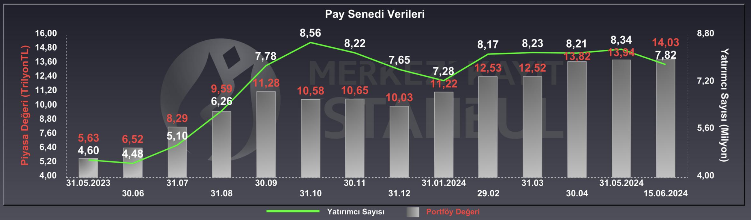 Aynı hafta Borsa İstanbul’da pay senedi değeri ise hisse senedinde işlem vergisinin şimdilik de olsa rafa kaldırıldığının ortaya çıkması nedeniyle 13,56 trilyon TL’den 14,03 trilyon TL’ye yükseldi.