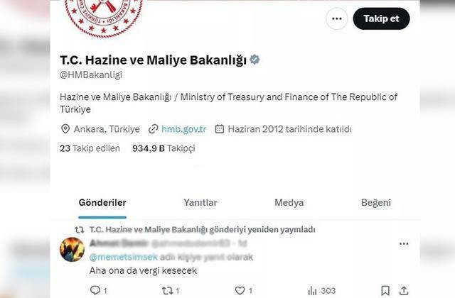 Bu paylaşımın altına gelen bir kullanıcının “Aha ona da vergi kesecek” şeklindeki paylaşımını Hazine ve Maliye Bakanlığı’nın hesabı retweet edince gündem oldu.
