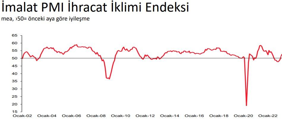 Endekste eşik değer olan 50,0’nin üzerinde ölçülen tüm rakamlar ihracat ikliminde iyileşmeye, 50,0’nin altındaki değerler ise bozulmaya işaret ediyor.