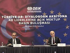 Dış Ekonomik İlişkiler Kurulu (DEİK) Türkiye-Avrupa İş Konseyleri, Avrupa Birliği (AB) liderlerine “Türkiye’nin AB üyeliğinin önünün açılması, Gümrük Birliği’nin güncellenmesi ve işbirliğinin güçlendirilmesi” gibi çağrıların yer aldığı mektup gönderdi.