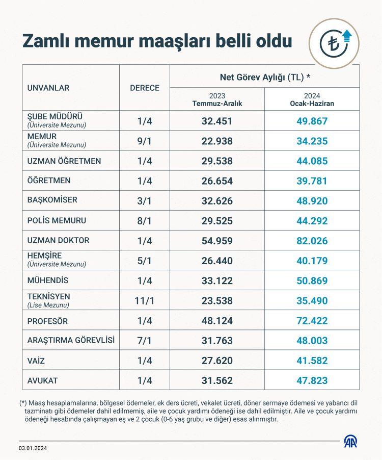 Memur aylıklarına temmuz ayında yüzde 17,55+8 bin 77 TL seyyanen zam yapıldı. Temmuz ayında toplu sözleşme zammı ise yüzde 6 oldu. Yüzde 6’yı aşan enflasyon farkı maaş zammına yansıtılacak. Buna göre altı aylık dönemde memur maaşları için yüzde 31,57 civarında enflasyon farkı doğdu. Memur ve memur emeklisinin alacağı zam oranı da yüzde 49,3 olarak netleşmiş oldu.