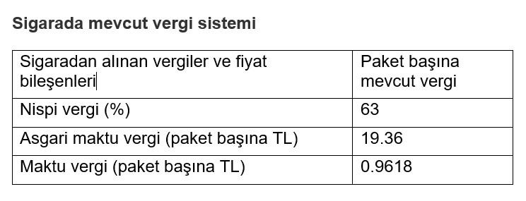 Tütün ürünleri üzerinden alınan maktu ve asgari maktu Özel Tüketim Vergisi (ÖTV) tutarlarına her altı ayda bir Yurtiçi Üretici Fiyat Endeksi (Yİ-ÜFE) dikkate alınarak otomatik artış yapılıyor. Otomatik yapılan ÜFE zammı da doğal olarak fiyatların artmasına yol açıyor. Sigaradan alınan vergi yüksek oranda fiyata bağlı olduğu için, mevcut sistemde vergideki bir kuruşluk artış fiyata yaklaşık 7 kuruş olarak yansıyor.