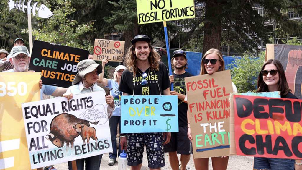 Protestocular Jackson Hole toplantılarının yapıldığı otelin önünde görüşlerini özgürce dile getiriyorlar ve şiddete de maruz kalmıyorlar.