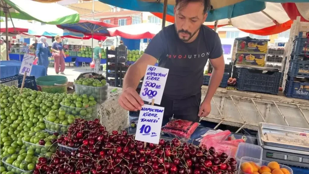 Kiraz fiyatlarında görülen rekor artış, İstanbul ile sınırlı değil. Geçtiğimiz günlerde Eskişehir’de satışa sunulan Napolyon kirazın tanesinin 10 lira olduğu görülmüş, söz konusu görsel sosyal medyada büyük tepki toplamıştı.