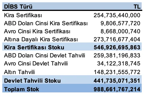 Gelinen noktada doğrudan satış yöntemiyle ihraç edilen DİBS’lerin stoku 1 trilyon TL’ye yaklaşmış bulunuyor. Bu tutar Hazinenin toplam borç stokunun yüzde 12,5’ine karşılık geliyor.