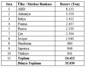 Altın rezervinin Çin’de ve Rusya’da yüksek olmasının nedeni Çin ve Rusya’nın son yıllarda rezervlerini dolar ağırlıklı olmaktan çıkarıp altın ağırlıklı hale getirme çabalarıdır. Aslında Trump’ın görevi gelmesi sonrasında merkez bankalarının çoğu altın rezervini artırmaya yöneldi. Bu yönelişin altın fiyatlarının yükselmesine önemli katkı yaptığını söylemek gerekir.