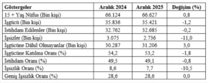 Bu sorunun yanıtını bulmak için manşetlere değil, rakamların arkasına bakmak gerekiyor. Aşağıdaki tablo mevsim etkilerinden arındırılmış verilerle Aralık 2024 ve Aralık 2025 sonuçlarını karşılaştırmalı olarak gösteriyor (kaynak: TÜİK: İşgücü istatistikleri, Temel İşgücü Göstergeleri, Aralık, 2025):