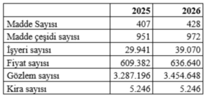 “Türkiye İstatistik Kurumu (TÜİK) önceden ilan ettiği gibi 2026 başından itibaren Tüketici Fiyat Endeksi (TÜFE) ölçümünde baz yılı, kapsam ve ağırlıkları değiştirdi. TÜFE’de yapılan değişiklikler sadece teknik bir güncelleme değil, ölçülen enflasyonun düzeyini ve kamuoyunun algısını doğrudan etkileyecek değişiklikler. Bu değişikliklerin neler olduğunu ek 1’de ayrıntılı olarak veriyoruz. Aşağıdaki tabloda TÜFE’nin kapsamı yer alıyor (kaynak: TÜİK, TÜFE Metodoloji Dokümanı):
